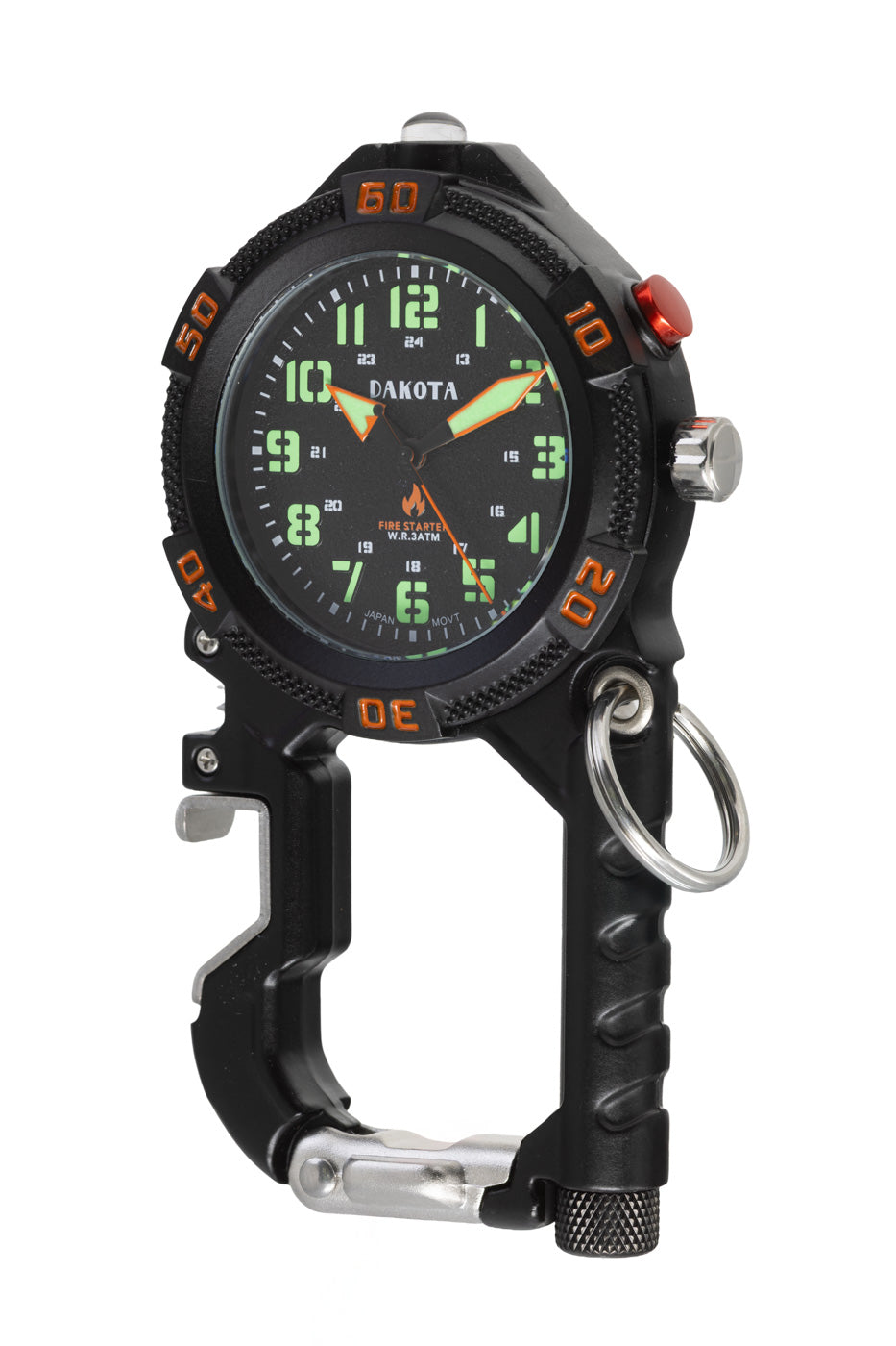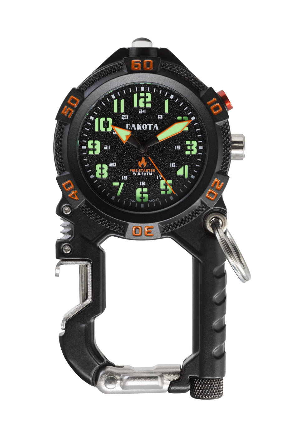 The Dakota Flint Clip isn't just a watch; it's a command center for your keychain. By combining four essential tools into one streamlined device, it ensures you’re always prepared without weighing you down. The integrated carabiner clips instantly to your gear, putting reliable timekeeping and indispensable utilities right at your fingertips.